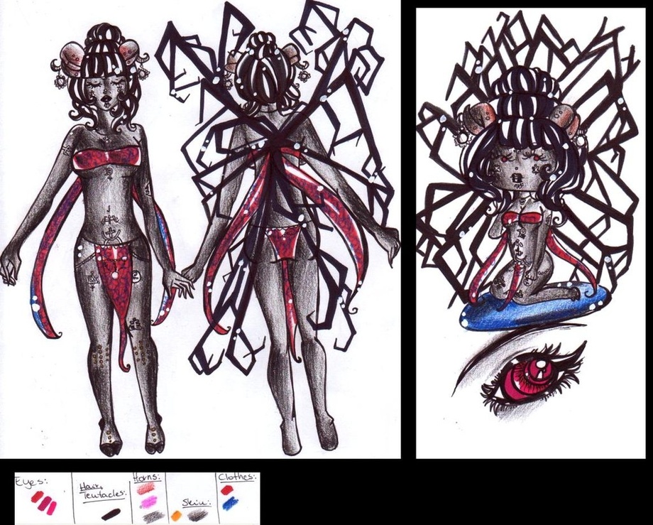 This is Fallon my Demon character. She has about 30 tentacles on her back she can hide them and show them. She can have all 30 out and or five six and so on. Her powers are She can control the dead and open the gates to hell. Where she rules as there Queen pain and blood will come to those who choose to battle her.
