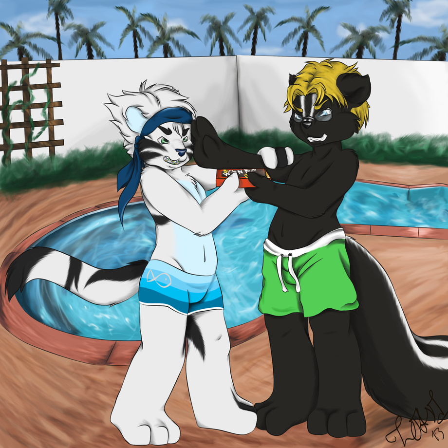 Toan and Daniel went to the local pool to spend the day in the sun. Unfortunately they only brought one chocolate bar, and none of them thinks of sharing it especially since there´s a golden ticket involved.