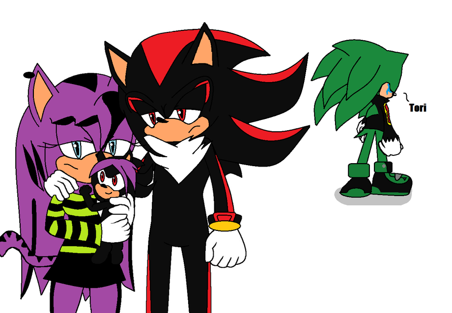 "Shadow! Come on its me Scourge! We use to work for Eggman!" Scourge said. "I dont remember you." Shadow said. "Where is your husband Sonic?!" Scourge asked. "Husband? Sonic? That Faker? Ha!" Shadow said laughing. "Sonic died many years ago." Shadow said cocking the gun. "Mama!" A little boy yelled running to Tori. "Mama?!" Scourge yelled surprised. "Hello Tyler my dear." Tori said kissing the kids head. "But! What about our daughter?! Taya?!" Scourge yelled. "Your crazy, I have no daughter with you." Tori said turning her back to him and started walking away. "Tori! Please wait!" Scourge yelled but Shadow used chaos control and vanished them away. "Tori.." Scourge said and a tear fell from his face, he turned around. "How am I suppose to convice her that Im her husband?" Scourge asked. "You can do it me." The little hedgehog said. "Your right." Scourge said.