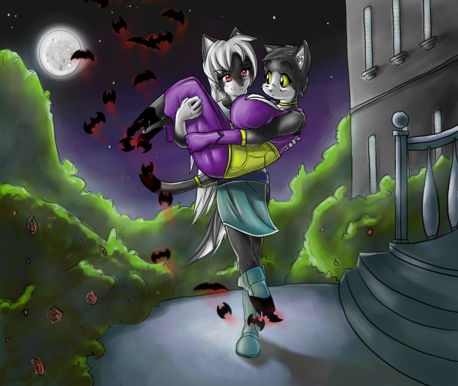 Zeroelle makes a task of teaching her recently vampirized lover how her kind teleports... at the same time that she conveniently whisks Alex away from the cold, dark courtyard to her hot, dark bedroom. ;)