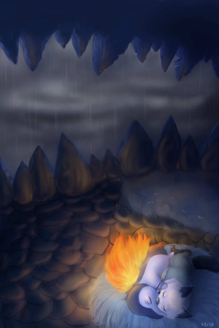This piece is so darn incredible, I love everything about this, the lighting is the most impressive thing abotu this along with the detail in the characters, I love the way Rio and Ignatius look, they look so adorable holding onto eachother for warmth, this artist really went beyond what was expected from a trade. I love this drawing ever so much. This artist is really worth checking out, so I suggest you all do this. Thank you ever so much for drawing this for us Mortalvis, we both love it ever so so much!