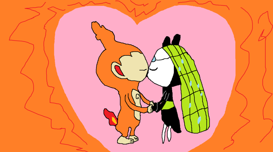 This picture if of FirestarShipping (Chimchar x Meloetta), a ship I made up based and named after my Team Firestar series on my Youtube page. As you may've guessed, these two are on the team and deeply in love with one another.
