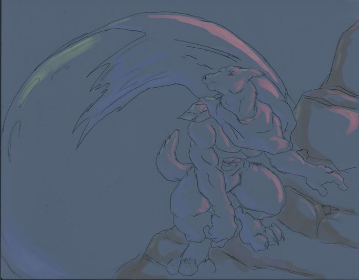 took a drawing of a wolf, with the most...unrealistic cape swirl and colored it only using a blue/red/yellow... I kinda like it.