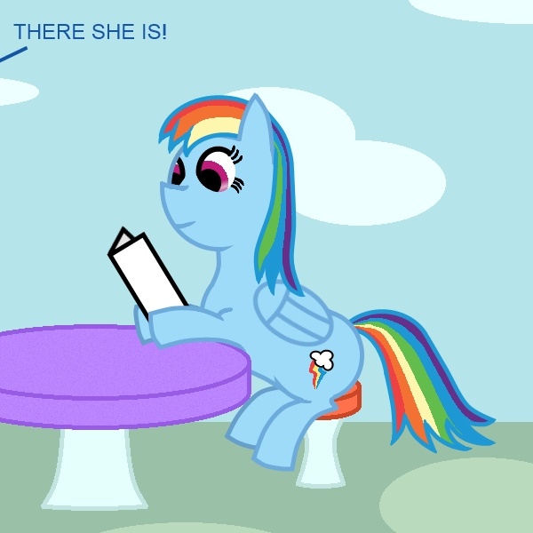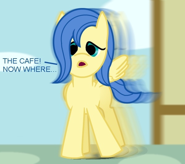 Fluttershy/Butterscotch rushes to his/her date with Rainbow Dash.