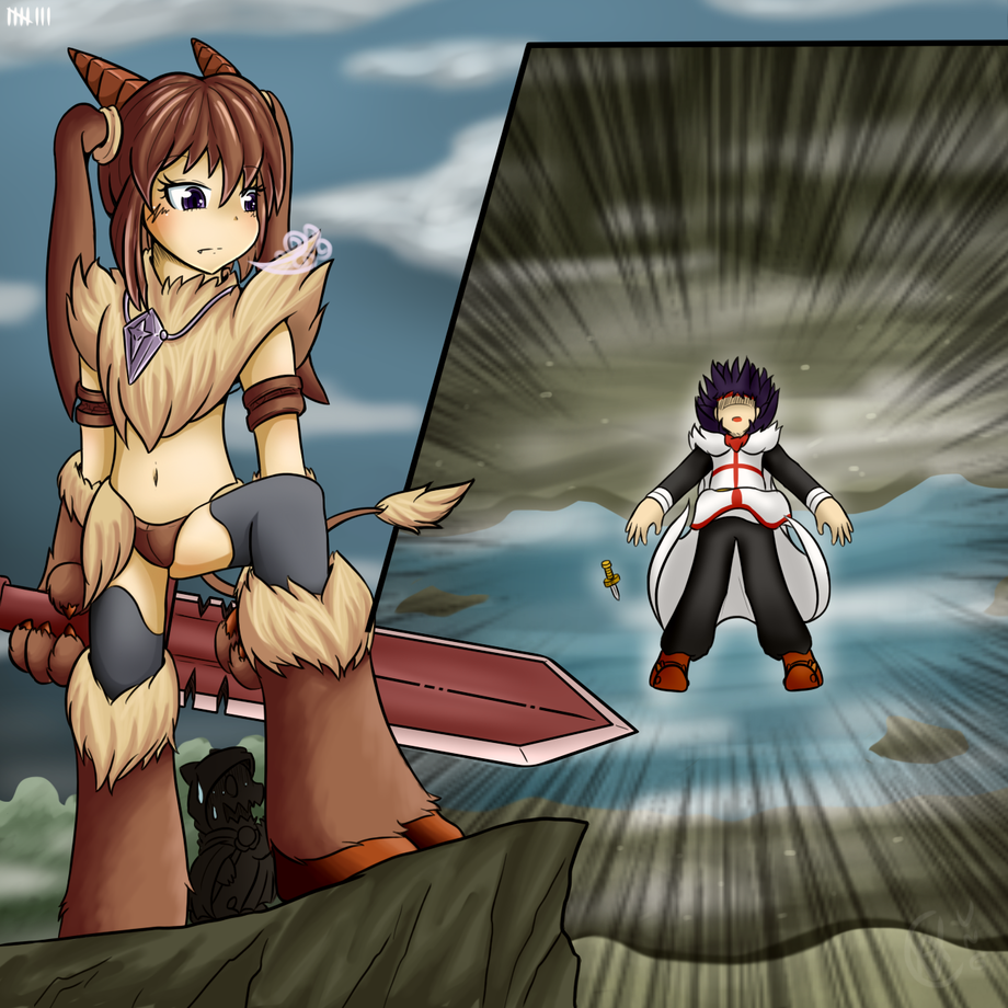 The Royal Knight ran along the path to the bridge and was ambushed before cross. But he quickly avoid it. The creature who attacked him was a Baphobit I. The bridge guardian who didn't let any human come to Dragon Castle pass a bridge. Knight had no choice. So he changed his sword into lance and fight it.