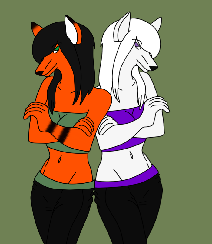 This is Winter (white wolf) and Dreamspirit (the orange fox) best friends and sisters chillin out together :3
