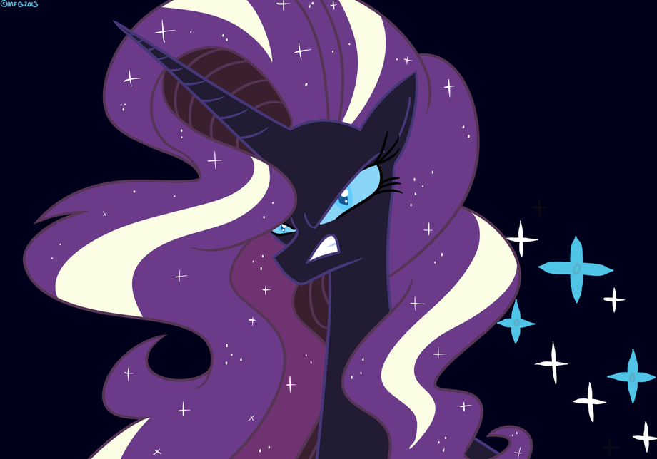 Many fellow Bronies have been asking me to draw Nighmare Rarity, so here she is. It may not be full-body like most wanted or anthro like few cloppers would enjoy, but at least she's created in my twist.