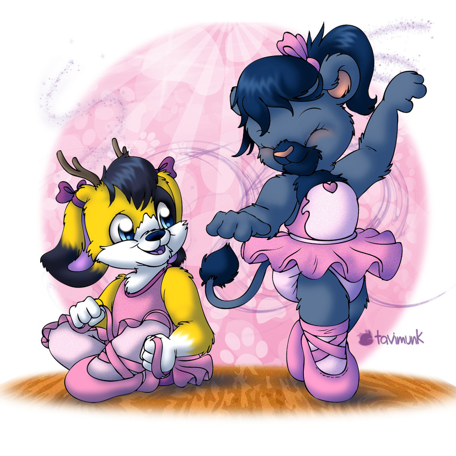 Lea showing Trev some steps as the sissy jackalope tightens his straps before taking part.