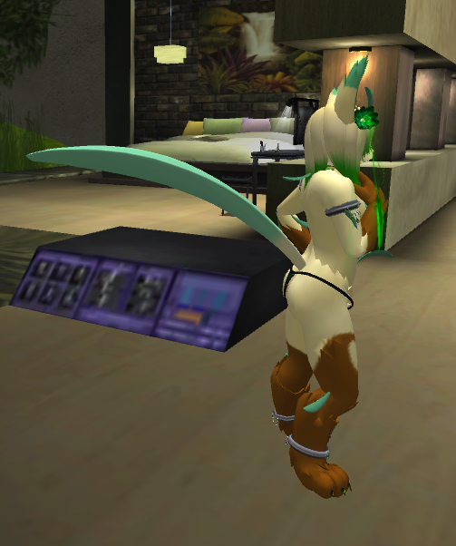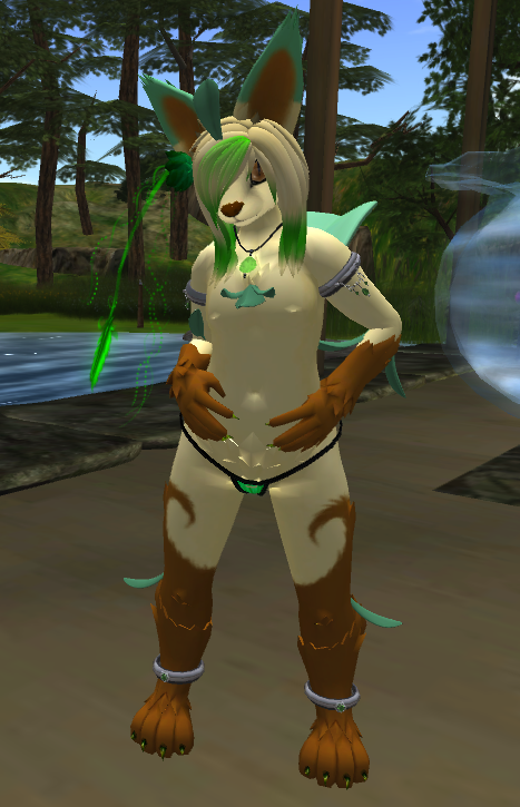 I couldn't find a Leafeon mod on second life....so I made my own |D The body textures are done by me. All spare parts and clothing/hair are done by their respectable creators. I did do the ear textures as well.