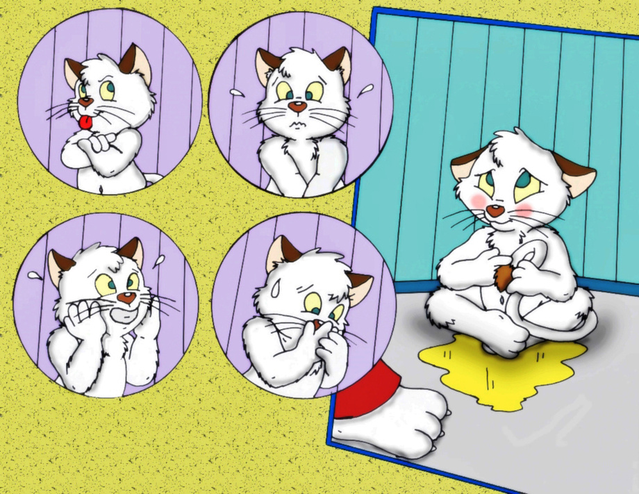 This little kitty is very sure of himself that he doesn't need anymore diapers...but when the nature calls and he don't have time to go to the bathroom ...well, his idea of "no more diapers",I think didn't worked out!^^