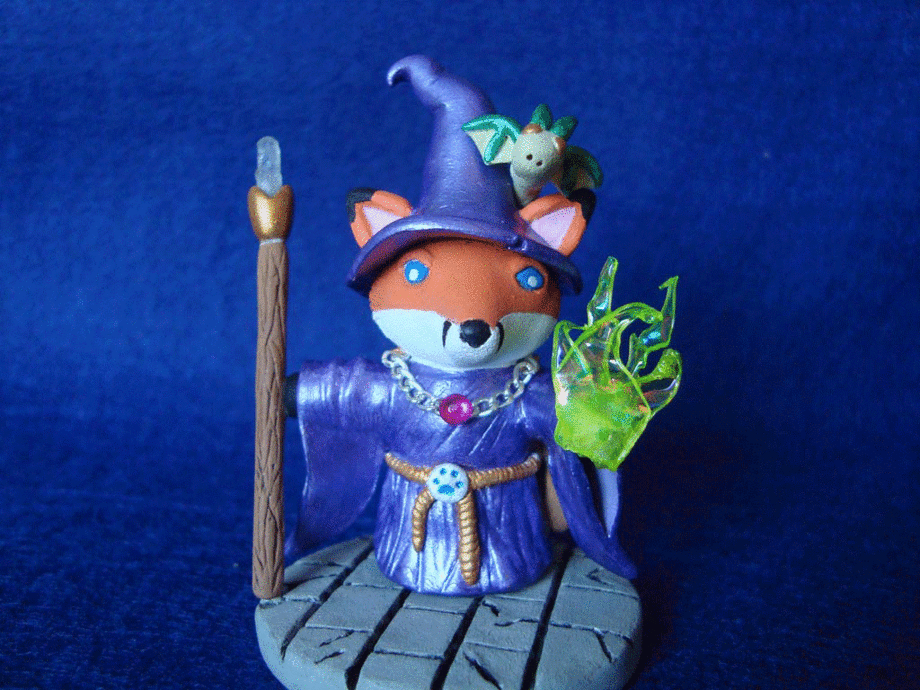 And this is what we have! A fox wizard with little wyrm familiar calling forth some magic :)