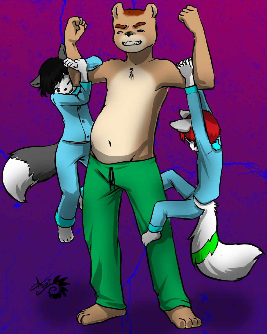Vince and Winter hanging on uncle Jason's arms before bedtime~! ^w^