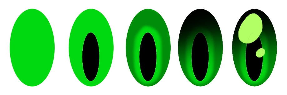 in step 4... with the eyes selected ..use a huge brush (almost the size of the whole pupil/eye) with black color selected and move it barely touching the border of the pupil/eye