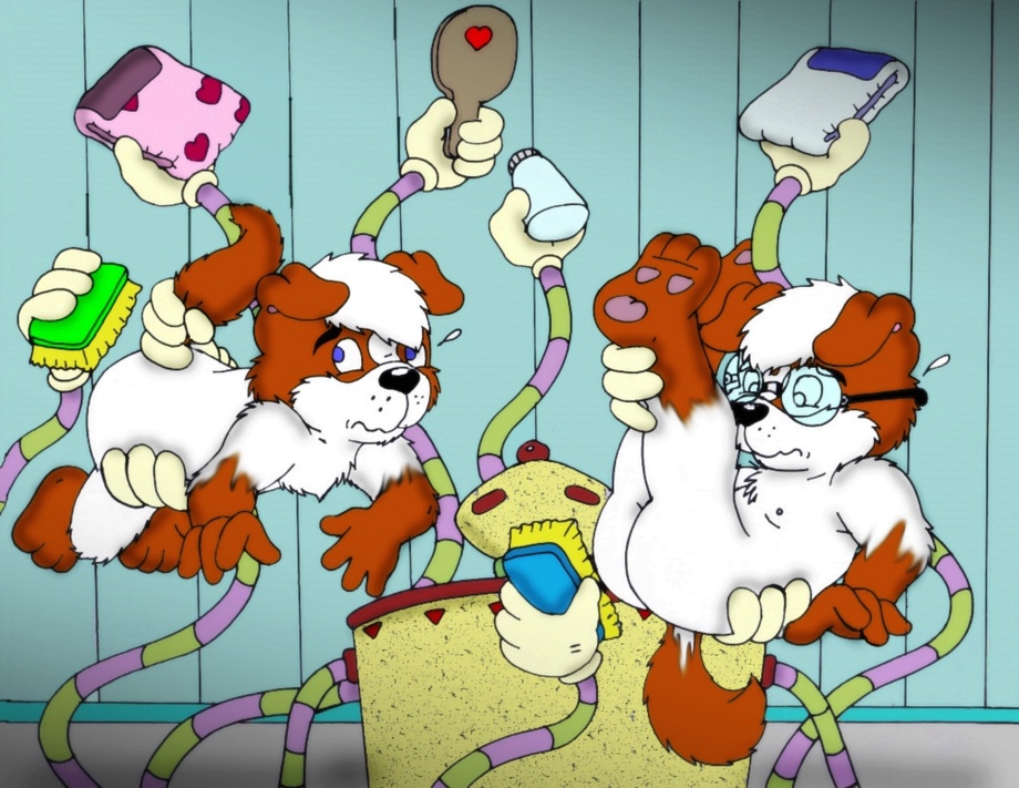 All in one machine:"Warning!Warning! I detected two stinking bottoms that need a good bath!"