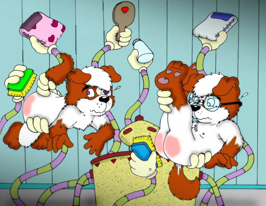 Matt:"Okay, tough pups ... well, for that reason and for moments like these I bought this machine called "All in one",and she will do the job for me! Have fun my pups! "* CLICK *