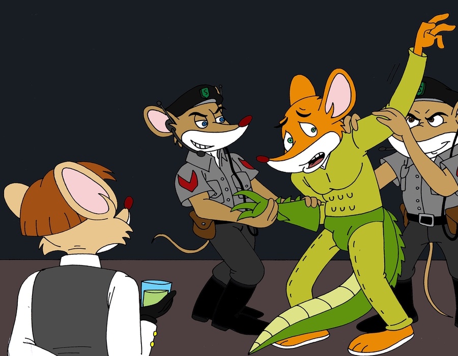 A random idea I had, based on my earlier pic series where Bucky O'Hare was forced to done a latex toad costume. As predicted, poor Geronimo came back for more after his last "interview" with Sessler. Little does he suspect that the wealthy mouse has fiendish plans for him.