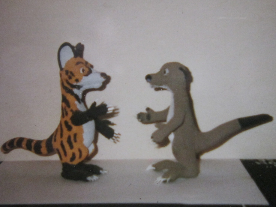Here are two out of the collection of figurines I've made in the year 1994 (they are 19 years old). When I do a series of drawings using the same characters in a story, I first make a 3-D of the characters to draw from. This keeps the characters looking consistantly like the characters they are through out the story. Professional cartoon studios used this method before everything went to computer animation.