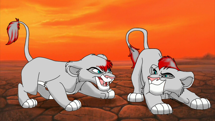 This is an actual screen still from "The Lion King II" of Vitani and Kovu. i went over it and relined them , colored in the twins and kept the background Just something i did for fun and to pass the time. Tried a little shading on this one.. Which is something i dont play alot with. So.. Go me lol
