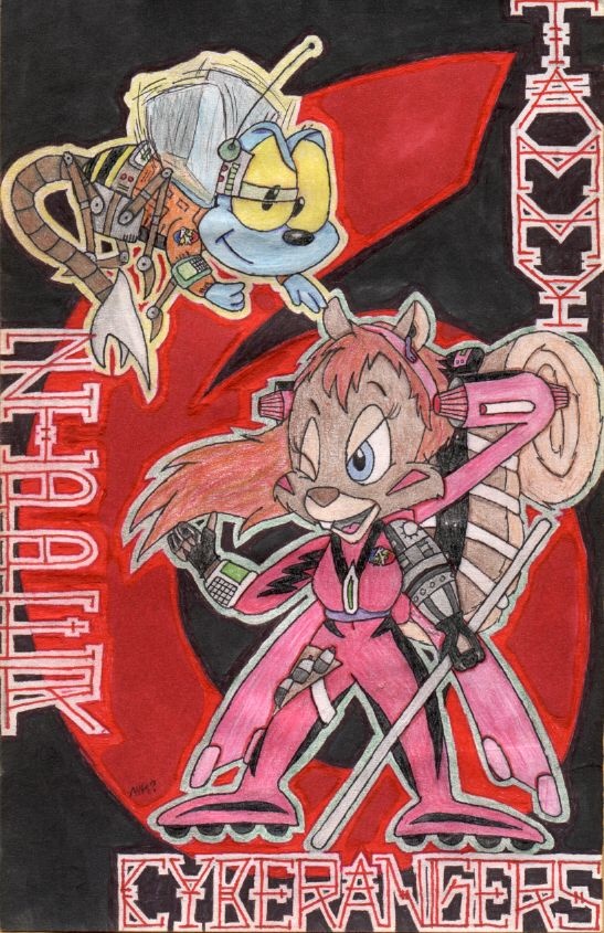 I put these two on the same page mostly because I didn't think I could fill a whole page with just Zipper. He's inspired partly by the Beast Machines Buzzsaw toy, and Tammy's got a little bit of Pink Ranger in her. It's not too obvious, but her costume is supposed to become a helicopter.