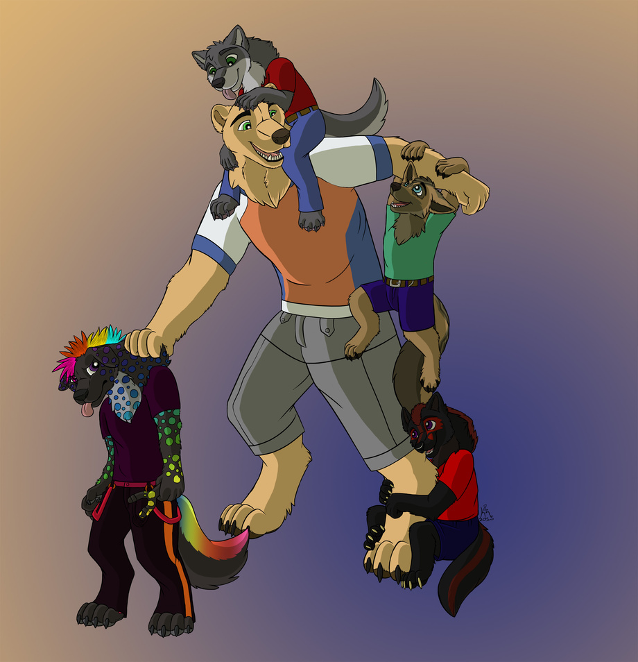 The characters here are MatsiWolf the bad boy, Darkstar the rider, invisibleBear the patient guardian, Diamond the hanging pup, and Destiny the Cling-on