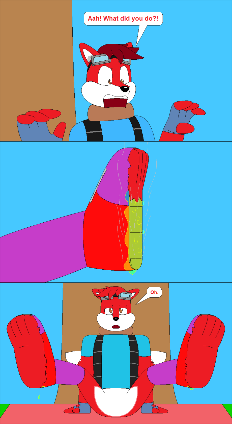 *Max what happened? Max: You know I'm over here minding my own buisness when this guy comes along and destroys my boots D: on a brighter note do you like my toes? *8P great job on the pic toony, can't wait until the comic conclusion :3