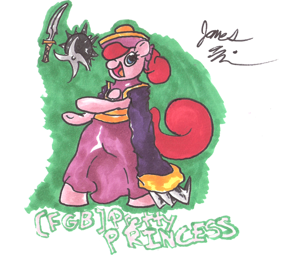 This commission was done by the awesome James Muir (https://evangel-rising.deviantart.com) of my pony OC, Pretty Princess done up as one of my favorite fighting game characters, Hsien-Ko from Vampire Savior. Thanks so much, James!