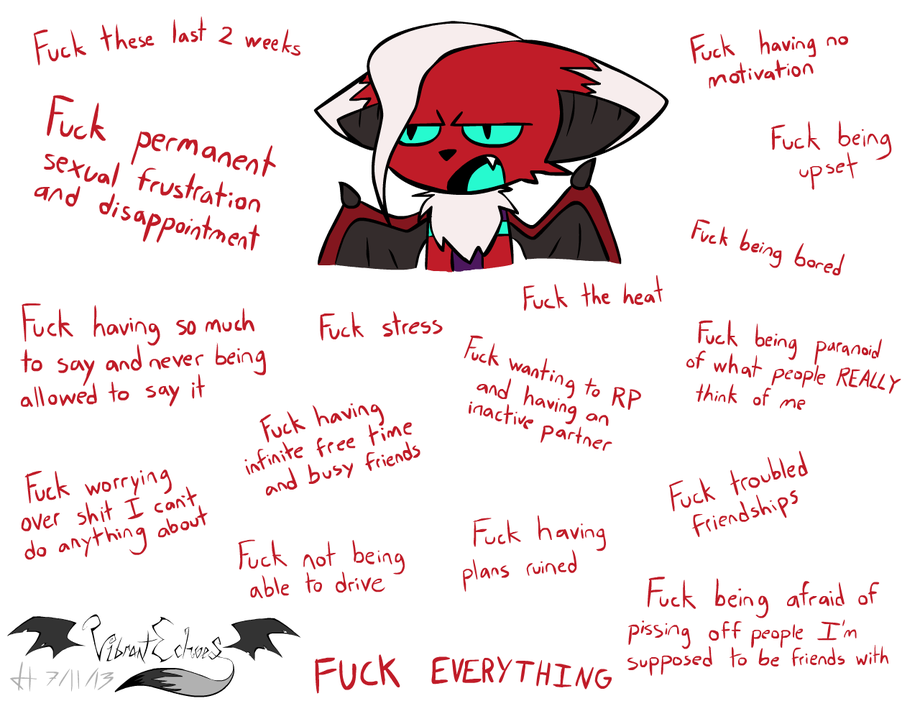 The reason I normally do much art and remixes and LPs and stuff is to keep myself occupied so I don't think about all of this. But when I have a period of time where I just don't want to do anything, it all sort of hits me at once. I'm sorry for having so many vent posts lately, I know no one wants to see this, but I just don't know what else to do to calm myself down if I can't actually fix any of these problems.