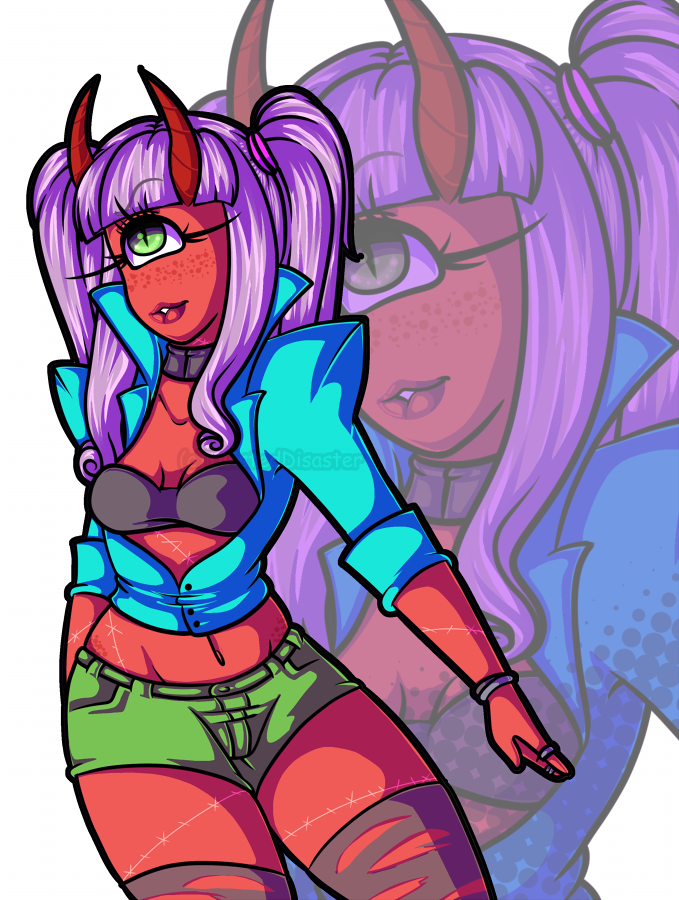 I AM SOOOOOO HAPPY I got to draw this girl! Its my first time doing a Cyclops girl that wasn't a chibi! and her clothes and colors are so different then the normal stuff I work with. I really really had a blast working with her. I found it funny when I was sketching her in my stream with her hand and then i realized duh she has two fingers like her baby sister which is this girl by the way -> https://twisteddisaster.deviantart.com/art/MadameSinist...