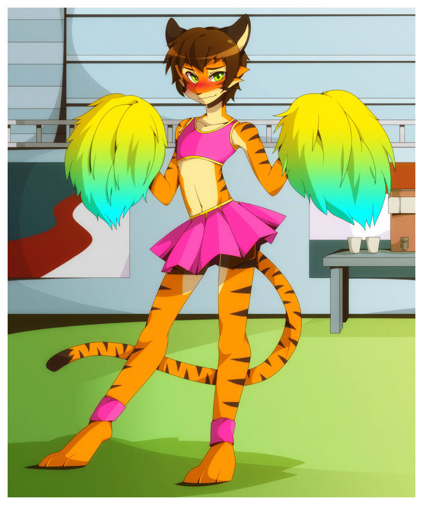 Oh my. Not only has someone made the poor tiger wear girly things, but it seems they're making him show it off. How embarrassing! #o_o#;;