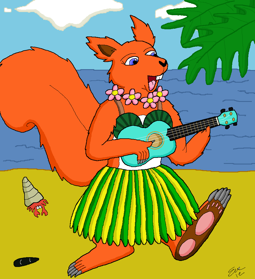 done last year. so its a recent one ive done. squirrelette playing on a ukulele. they are great to play and not hard to play either