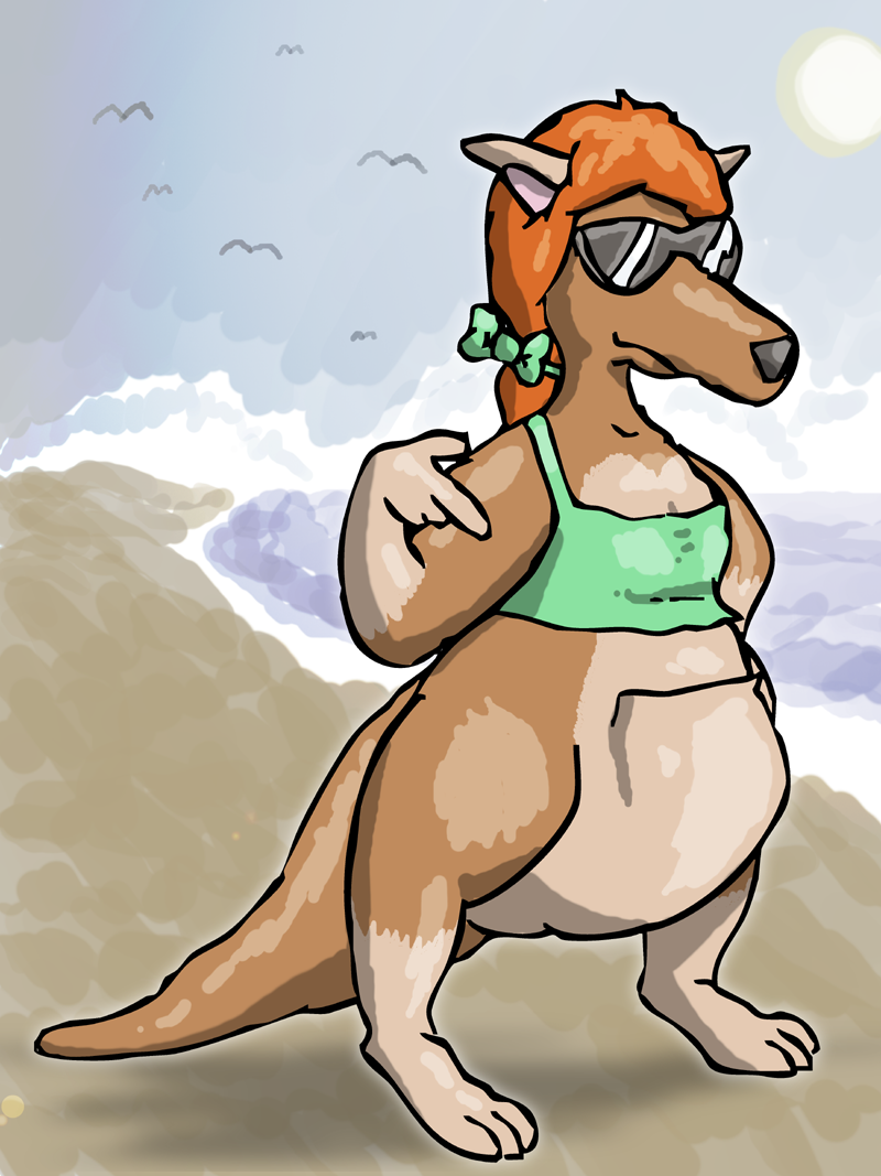 I wanted to draw a random tubby-ish kangaroo lady and this is what that ended up as. Turned out cartoonier than expected.