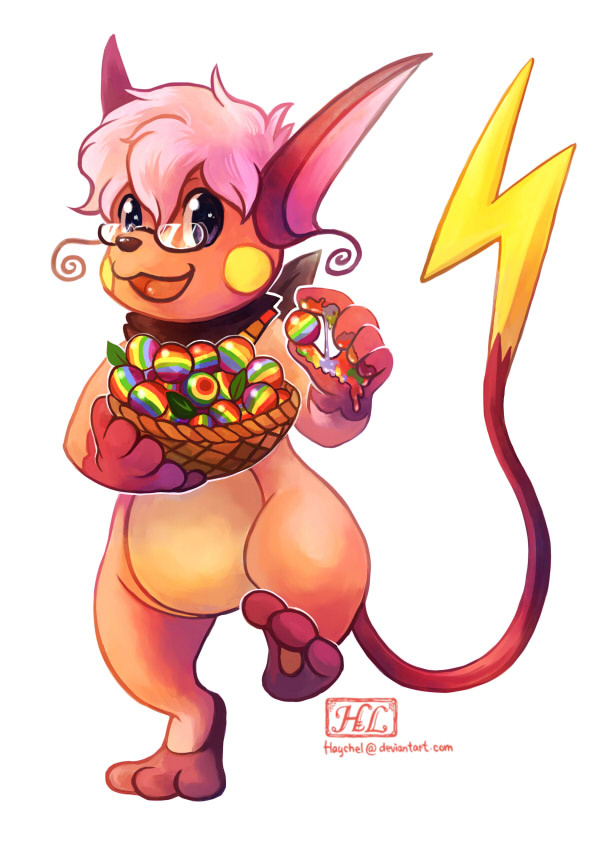 Here we see Niji with a fresh crop of Rainbow Iro Berries. These ones are hard to grow and take a long time. As you can see, the juice is just as rainbow coloured as the berry itself. The taste is different to each person, but usually is very sweet and candy like.