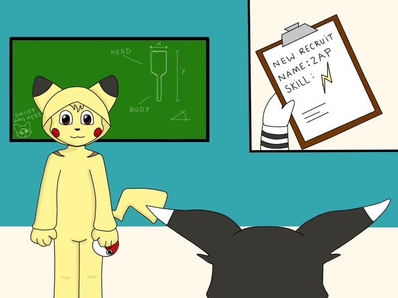 The board in the background amused me a lot XDXD Dat Smiley was here thing =I And the picture itself is pretty neat ouo new recruit pic is fun XD