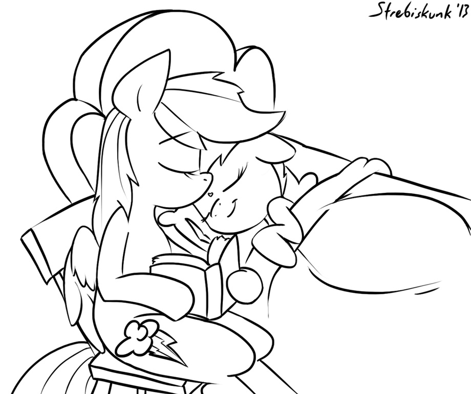 Rainbow Dash reading Scootaloo a bedtime story. I'll color this later.