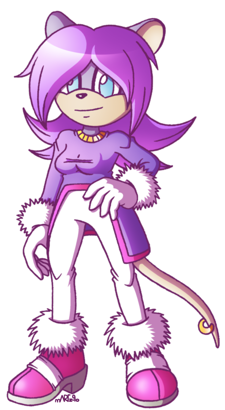 ALSO; important to note she has a walking stick now too, to help her get around; most opf the time it's retracted into the handle and clipped to her shirt on the back when she's not using it. you can see a picture of her like that here: http://fyeahbadsonicfancharacters.tumblr.com/post/5598...