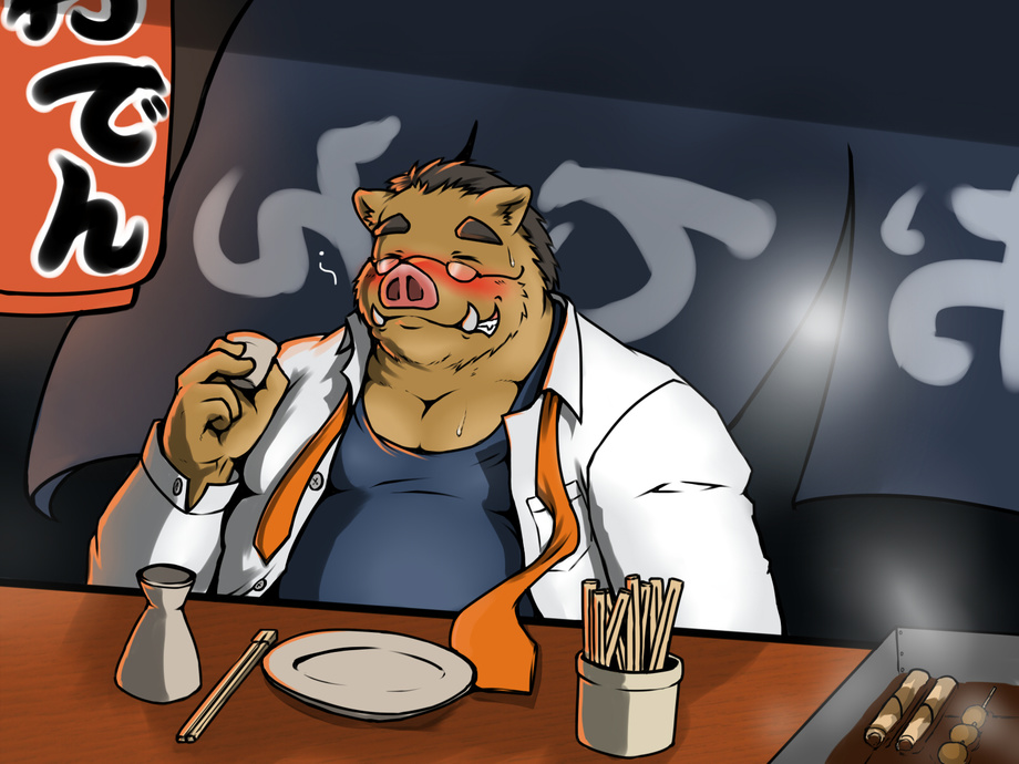 Botan Sensei drinking after his work.