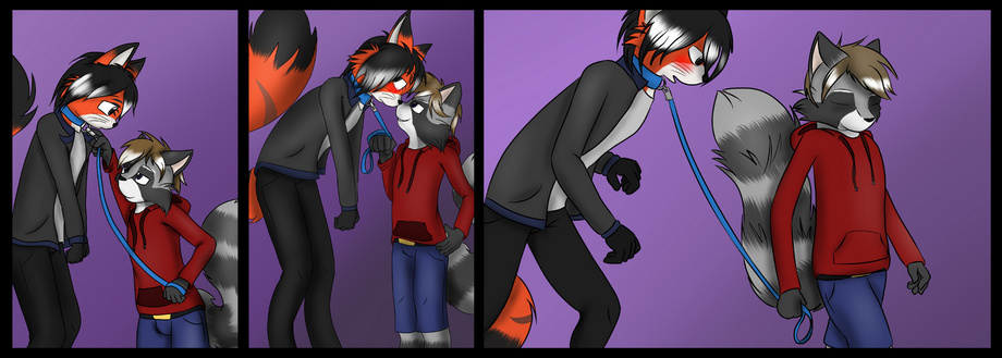 Looks like Porc has plans for Val, who is too surprised and shy to stop the little raccoon. Getting led about by a little coon cub - how embarrassing! ^^;