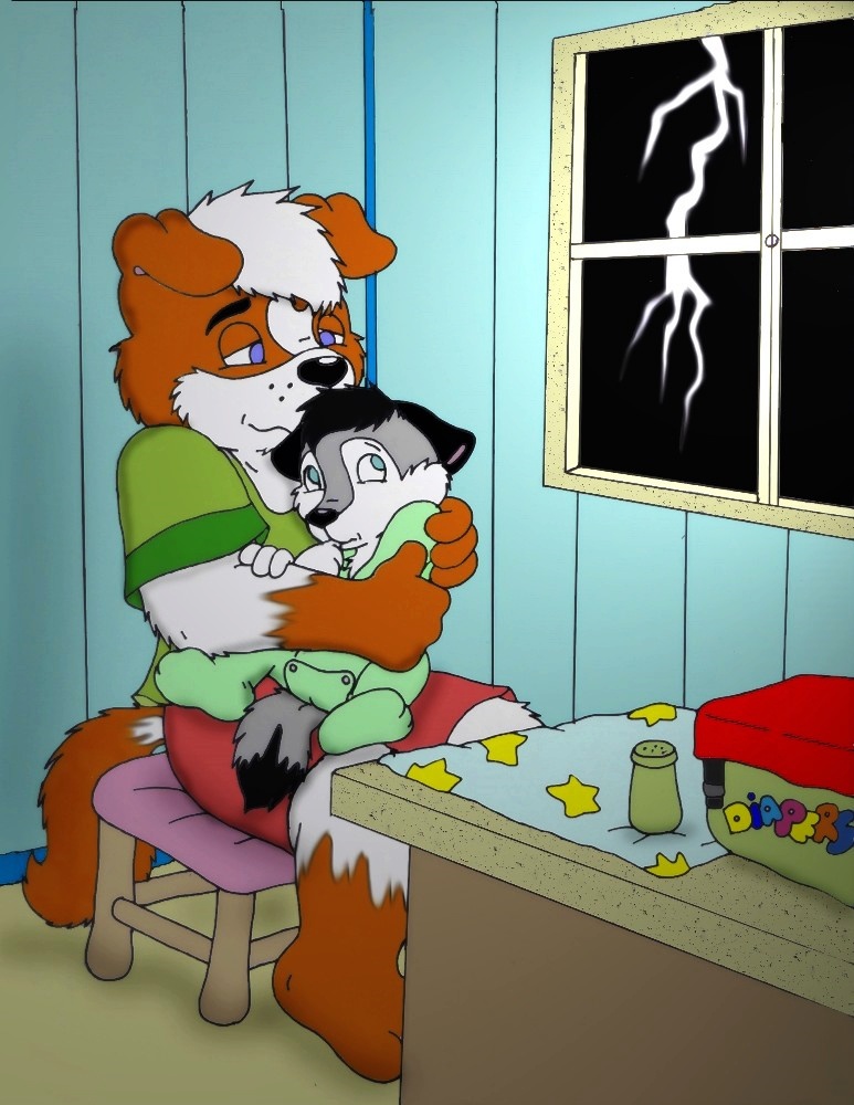 Aaawww ... yeah we've been all scared from thunder when we were young I guess ... and even today I think that I'm careful when T-Storm is in the neighbourhood ... to prevent electrical spike that would damage my electronics I disconnect all of it and deplug all ... yup got a bad surprise with a brand new Samsung TV in the past ... really nice one ... it's really cute and full of warmth ... sweet.