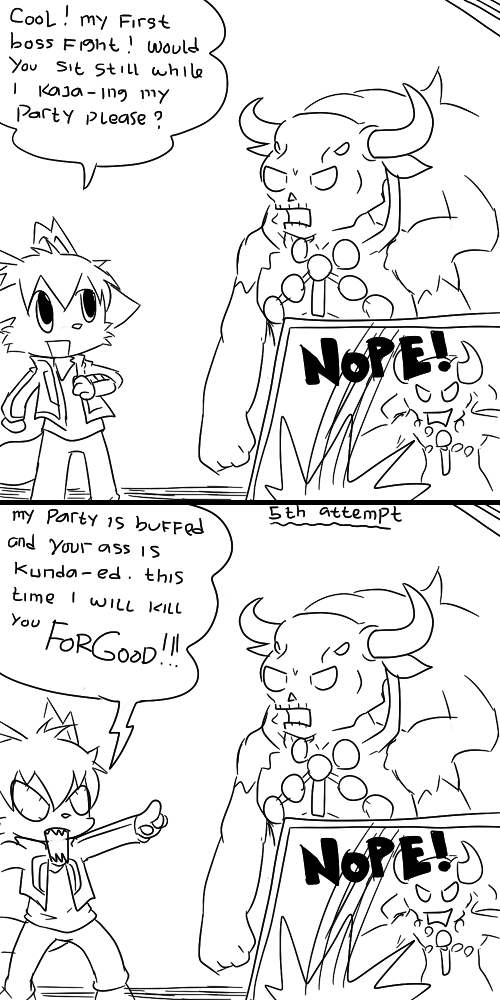 Nah, i am good. I made this just to remind myself of how silly it was when i first meet Minotaur. Right now i am in Shinjuku already and kicking ass left and right (with occasional getting-my-ass-kicked-from-pure-unluckiness ) :3