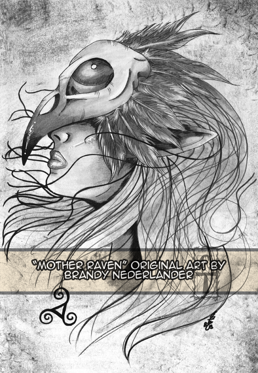 Image was drawn in pencil, and then inked. Original 12inches x 18inches Inspired by the Morrigan. Skull inspired by a random google search for a Ravens Skull.