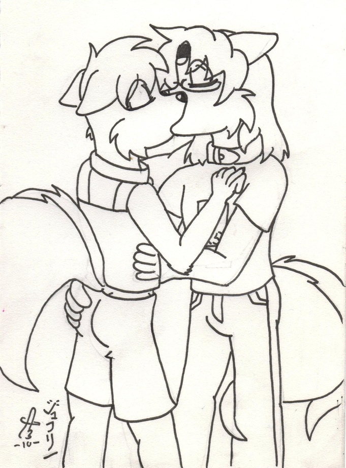 This is part of a Christmas gift from Artamis to me this year. Just a nice picture of the two of us sharing a warm kiss together, even if it seems that Artie's paw is having a little bit of fun for him XP