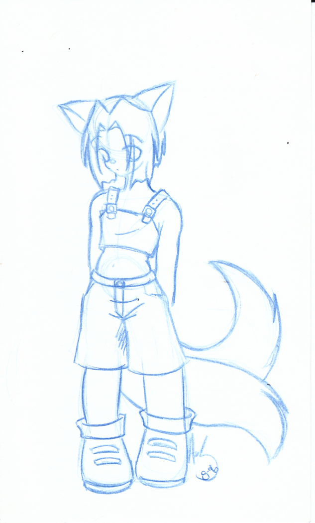Here's another pic that Asashi did back in 2005, of me put into her own comic world (Which is why he only has one tail), dressed up in his casual-wear. He's a lot more of a crossdresser in that world, can ya tell? XD
