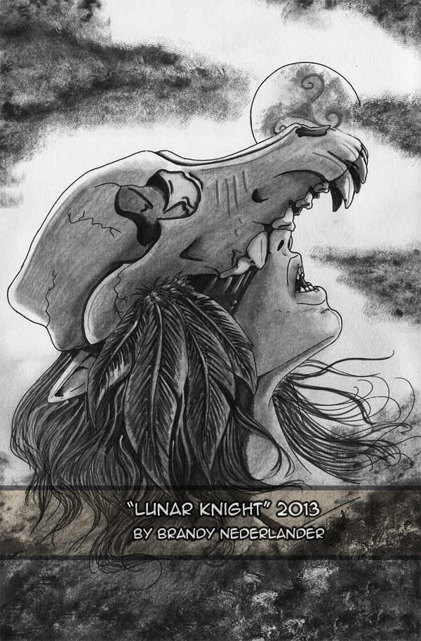 Original image was traditional drawn with pencils and quill pens, then scanned into photoshop to be resized for prints. Image was inspired by the Hounds of the Morrigan, and werewolf lore.