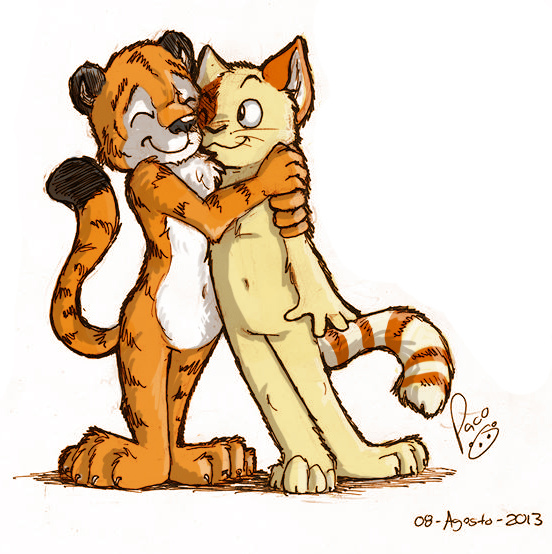 A gift for my friends Kobe and [iconname]Gatbeix[/iconname] who I met the last weekend, I drew them while we were in a coffee with more friends and my mate, they are really cool. It is always a really pleasure to met friends in real. n__n
