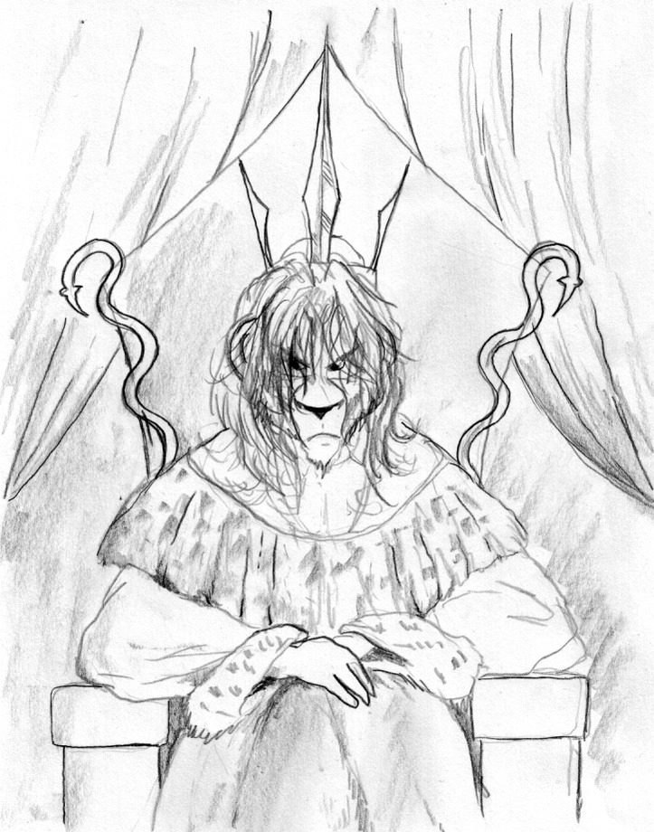 15 years old demon emperor Kehno sitting on his throne... The weight of his responsibility turned him into a thoughtful, melancholic guy...