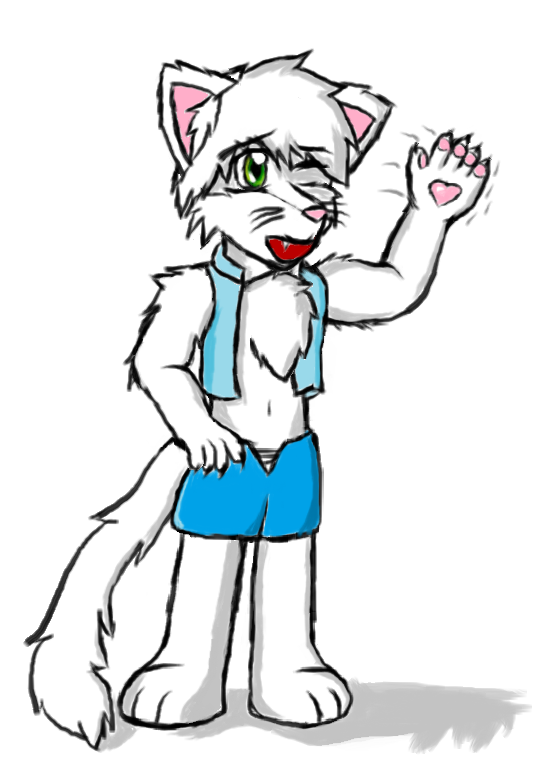 This is a request picture my friend generalfox115 drew for me of my fursona OC me Chris the Kitty wearing a sky blue vest and blue shorts,Chris the Kitty no like clothes but will only wear this on special days like for cards on Mothers day,Valentines and more, And at places that has a rule where you can't be nude to enter, I hope you like it. Hehe =3