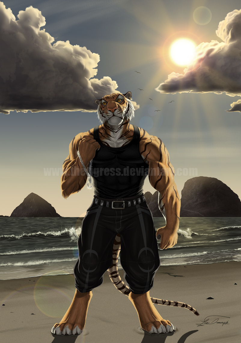 My character, Slick, on the beach of Oceanside, Oregon. Too lazy to explain the rest of the back story. The necklace has a deeper meaning, though.