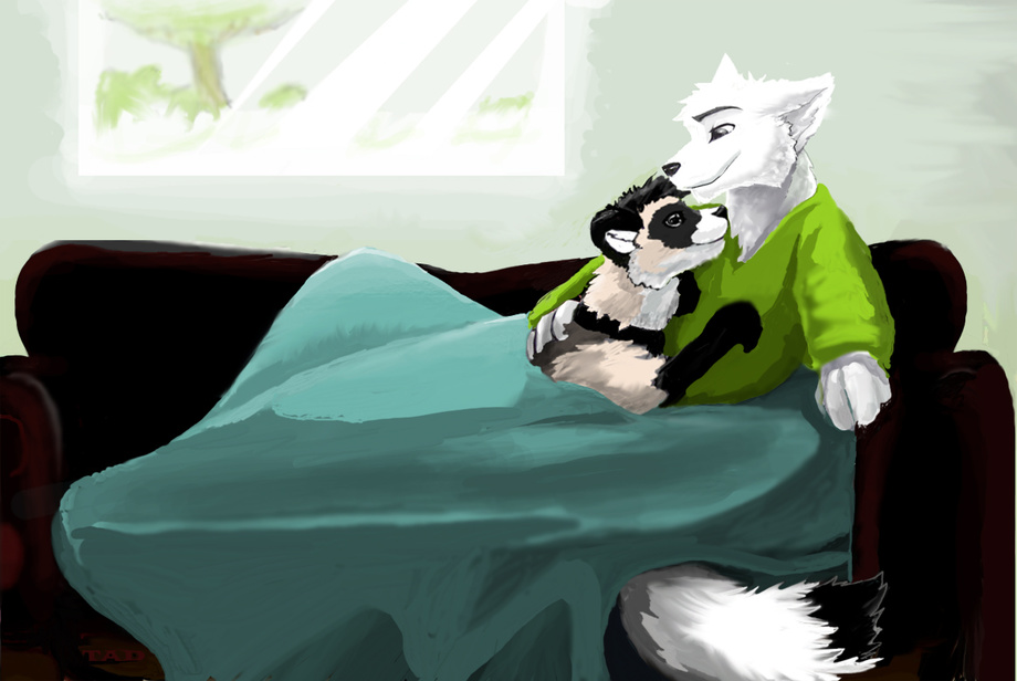 Christiaanferret and his snowyfox beau enjoyin a cuddle on the couch.