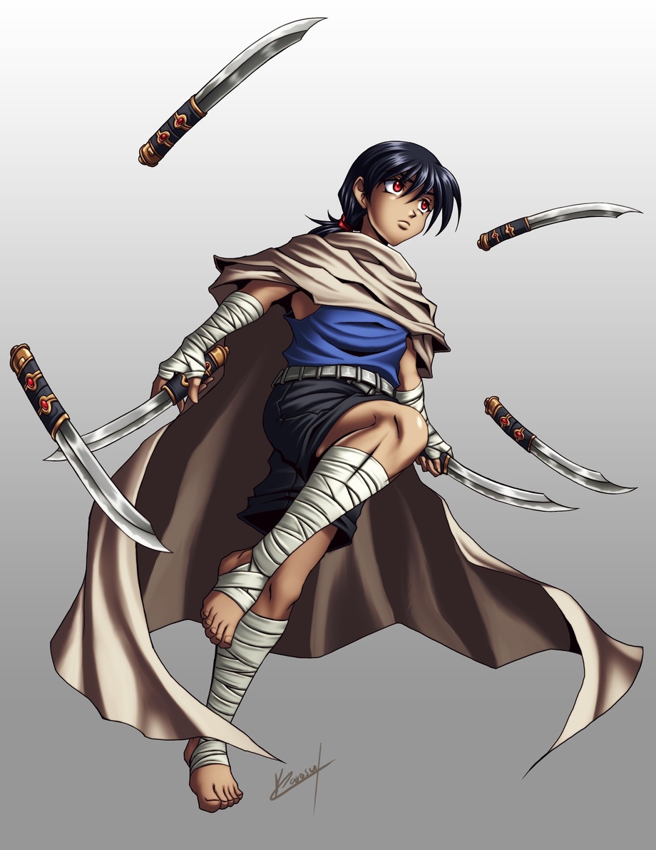 After his uncle committed a universal mass murder, his race his been widely hated around the universe. Either being viciously murdered, or enslaved. This action caused the deaths of Kiko's family, and he himself ended up in slavery for 90% of his life. Slavery of all kinds. Labor, sex, pain, combat, etc. To make matters worst, as a sex slave, his only masters were sadistic men. At least as a combat slave, he gained fighting skills that helped him escape later on. Learning he has the power to conjure knives, he went by such a nickname. He became a thief at first, but later upgraded to mercenary. Stealing, assassinating, slave trading, bodyguard, anything he's hired for.