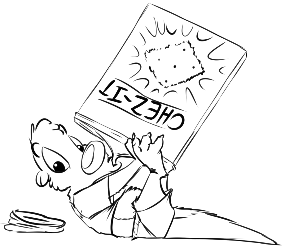 He was raised on Cheez-It's. I drew this because he refused to eat one, claiming he was on some diet somewheres.